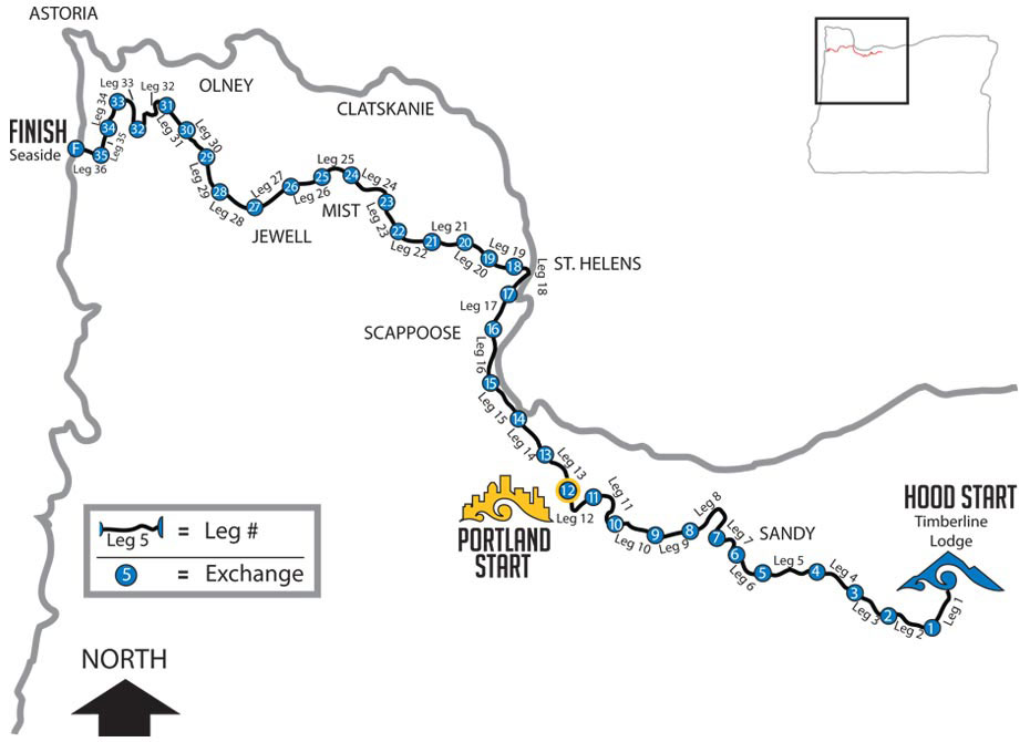 I don't want to brag, but I will: my relay legs were the best. I started by running almost 6 miles straight down a mountain (ow, quads). After our van's first set of legs, we had a break in Portland and were able to take naps at a teammate's house. I am very grateful for that bed. My next leg was on the waterfront in the middle of Portland, which was very toasty but lovely. After that, we had our break in a town called Mist, named such because it's, like, always, always super super misty. Last year I slept outside and woke up wet. (That was also the first time I'd ever slept outside. It was fun, even though it was excessively damp.) This year, I slept in the van and had the most intense 3 hour nap of my life. My last leg was at about 3:30am, so I can't report on what it looked like, but it was very refreshing!